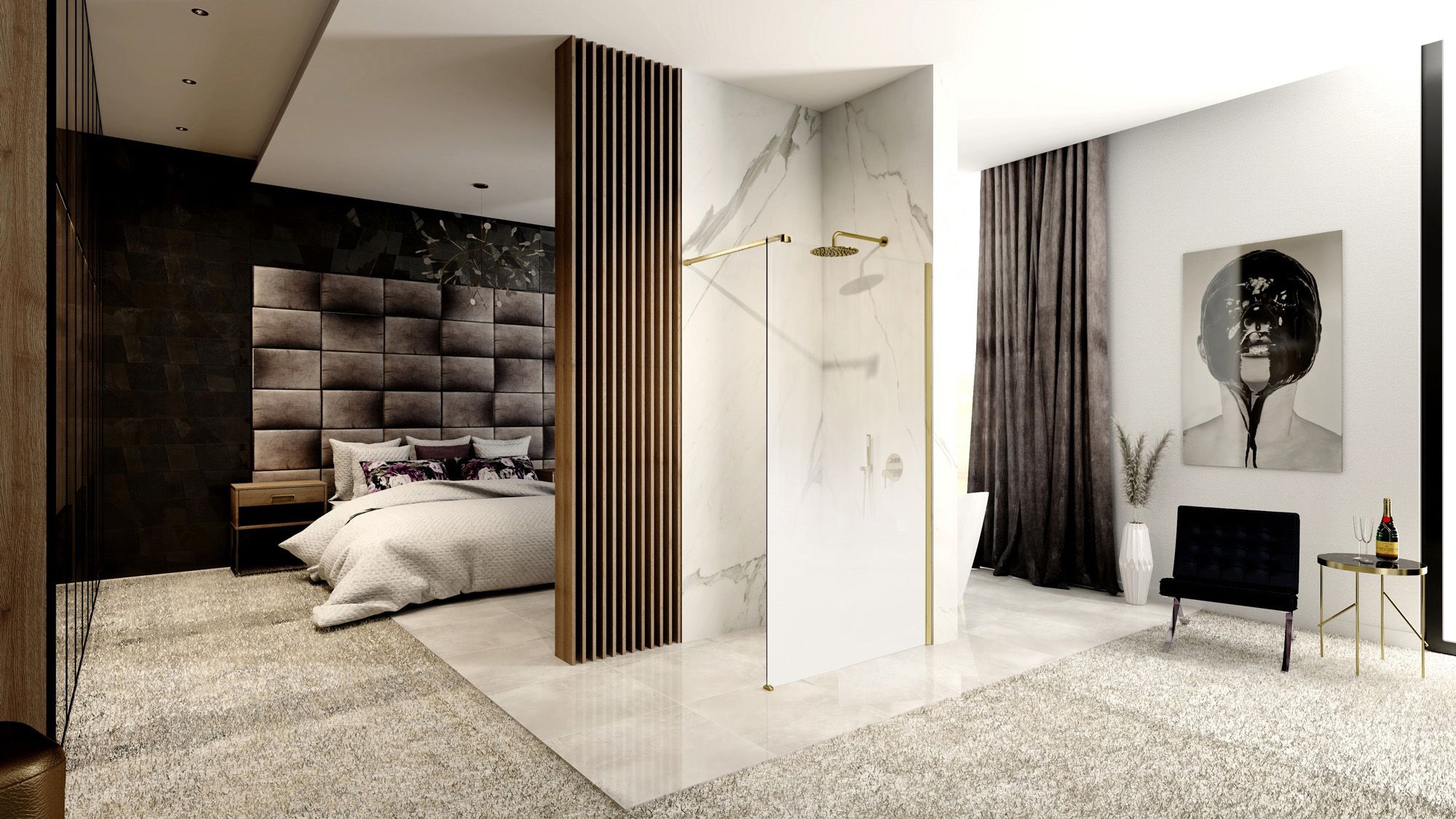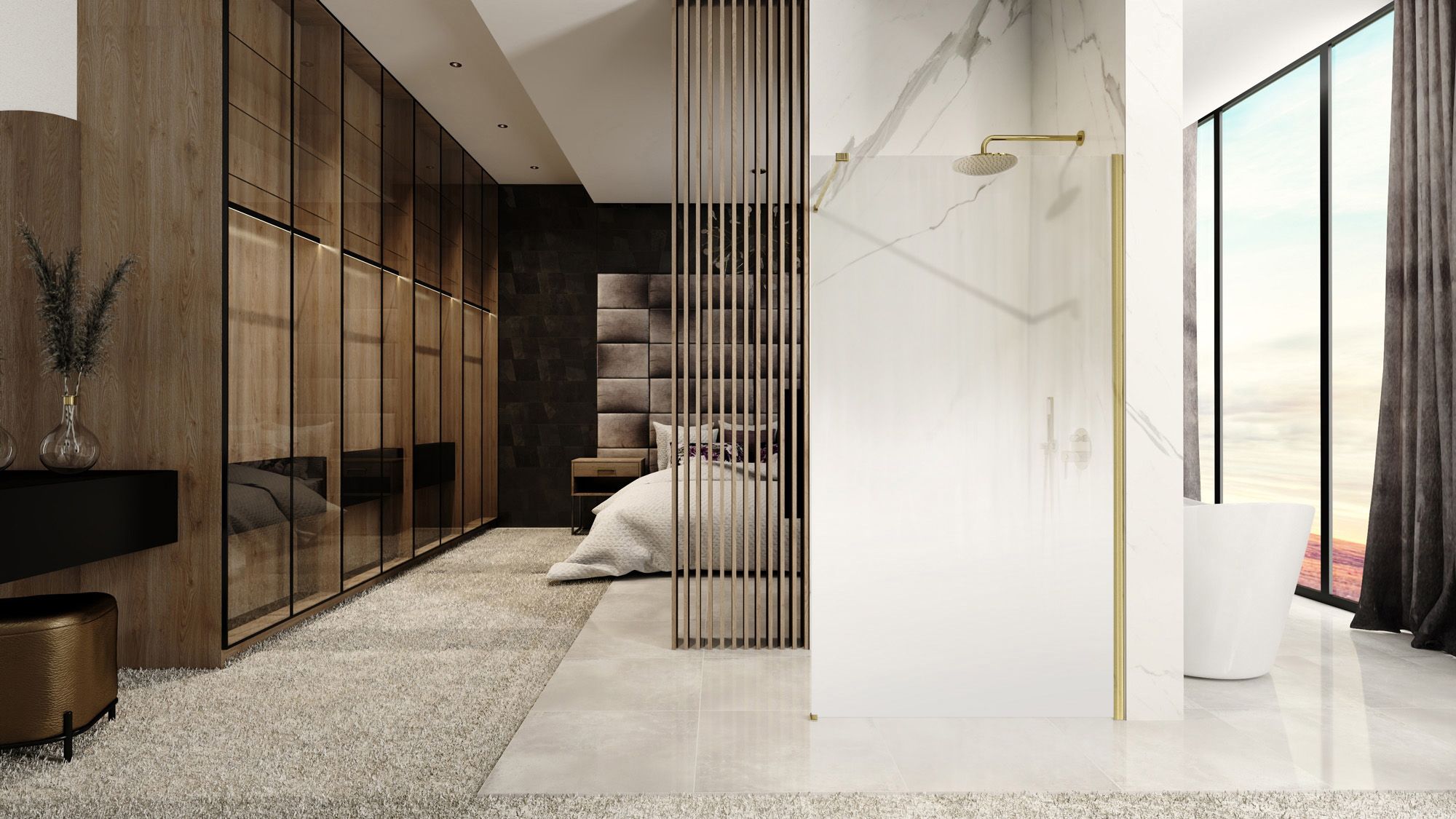 Paravan de dus Rea Aero Ombre Gold Brush/White 90